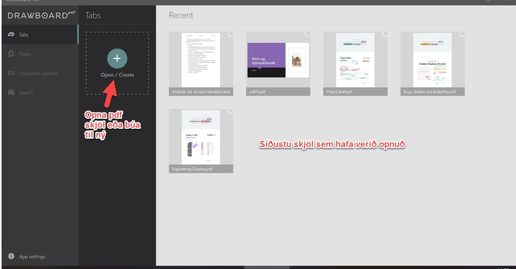 Um leið og búið er að ná í PDF skjal sem ætlunin er að vinna með opnast aðgerðarmöguleikar til að velja úr: