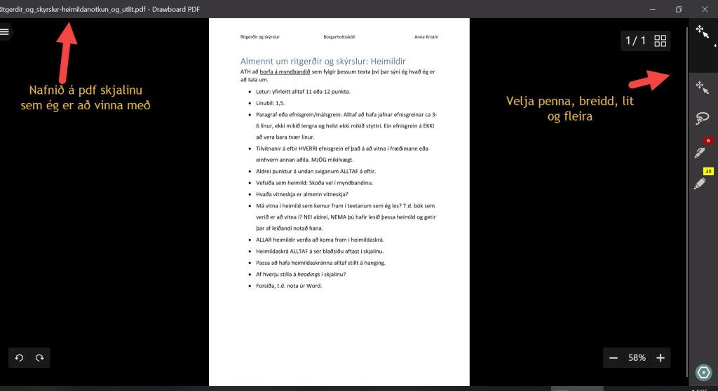 Hægt er að setja inn myndir til skýringar, setja inn „bookmarks“ og ýmislegt fleira. Eitthvað möguleikunum eru einungis fáanlegir í „Pro“ útgáfu en ágætt getur verið að byrja aðeins í þessari til að byrja með og sjá hvað þarf að nota.