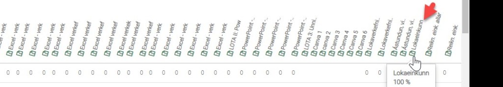 Finna lokaeinkunn á enda stikunnar yfir verkefnin en þegar rennt er yfir hana á að standa þar 100%.