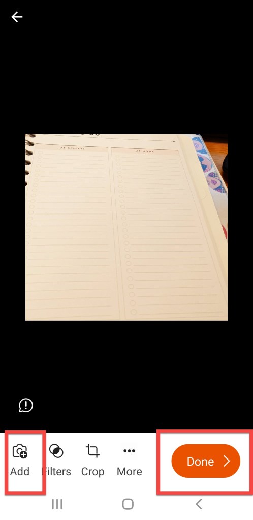 Þegar búið er að staðfesta kemur þessi mynd og þá er hægt að velja um DONE EF bara á að skanna eina mynd eða fara í ADD til að bæta við fleiri myndum. Það er líka hægt að velja Cancel ef þú vilt byrja upp á nýtt.