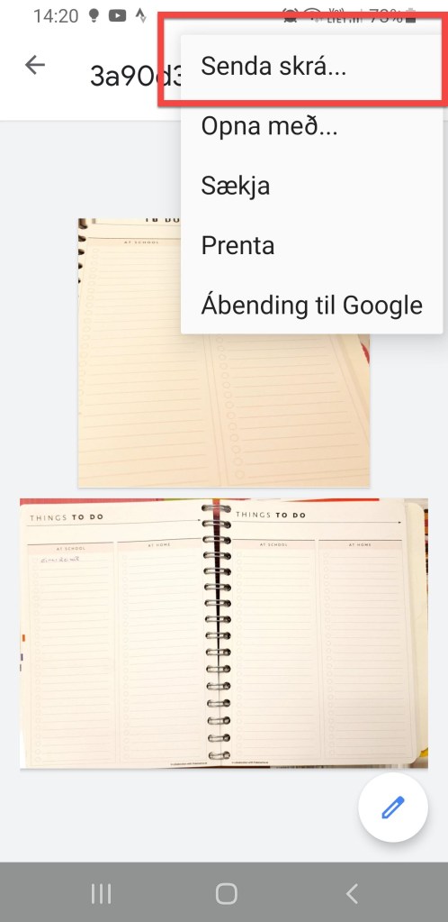 Þú þarft að smella á skjalið til þess að velja það og senda: